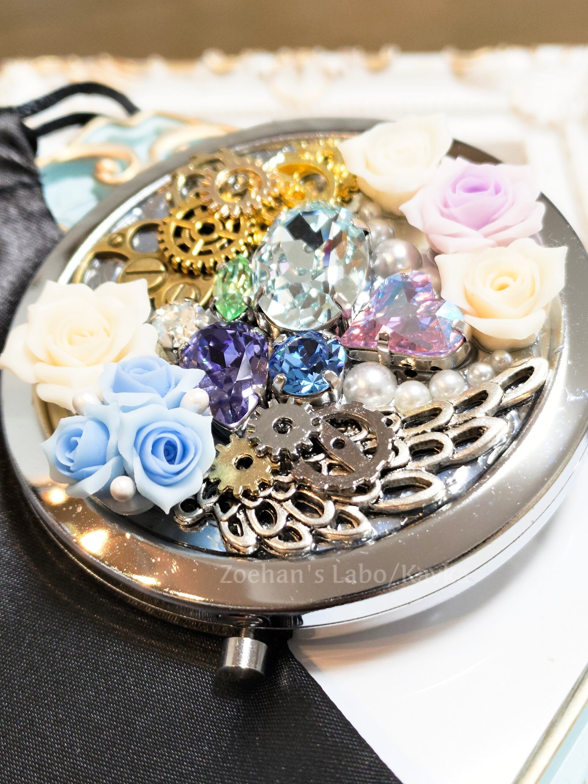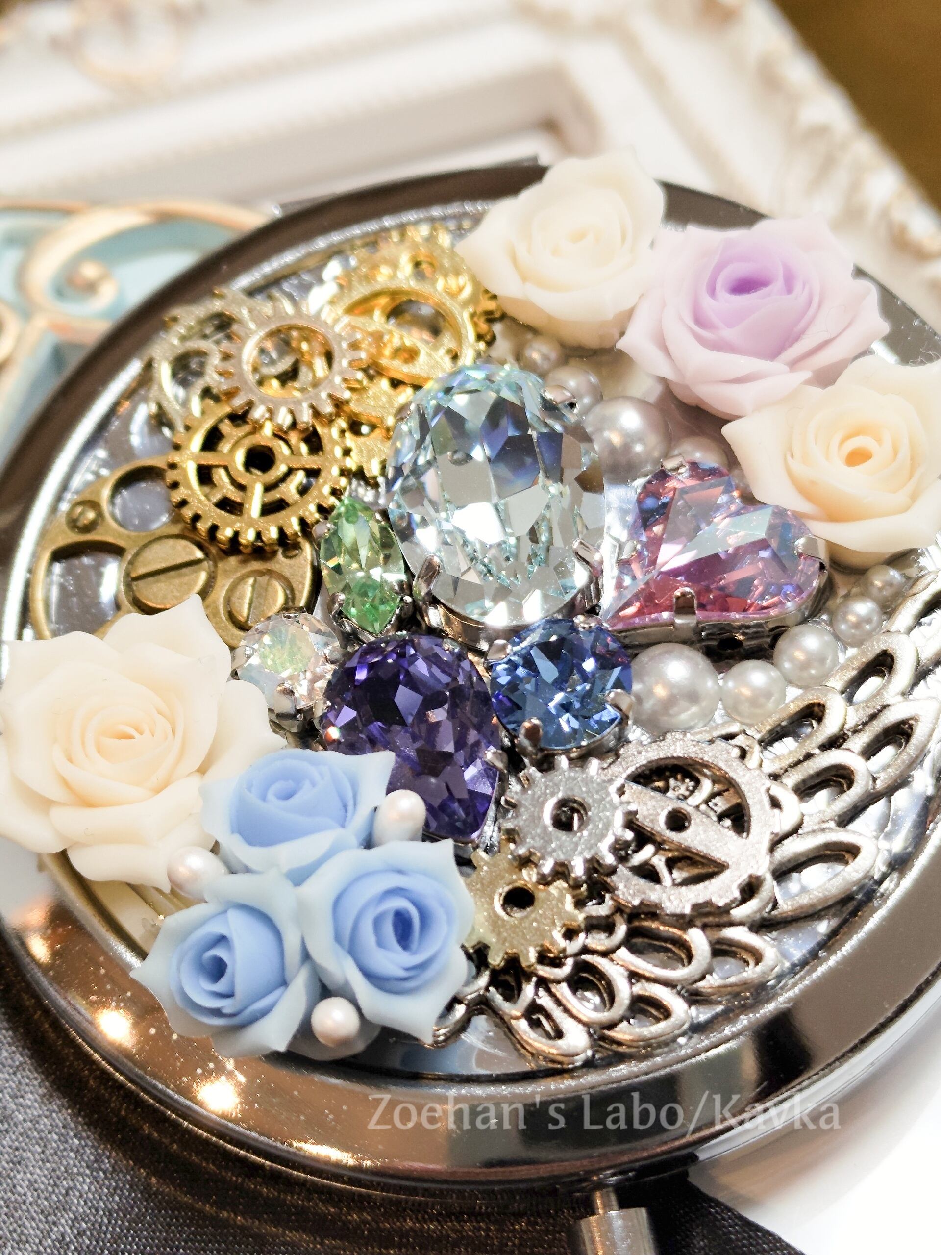 天使の世界をイメージし、クリスタルガラスを贅沢に使用したゴージャスなコンパクトミラーです。