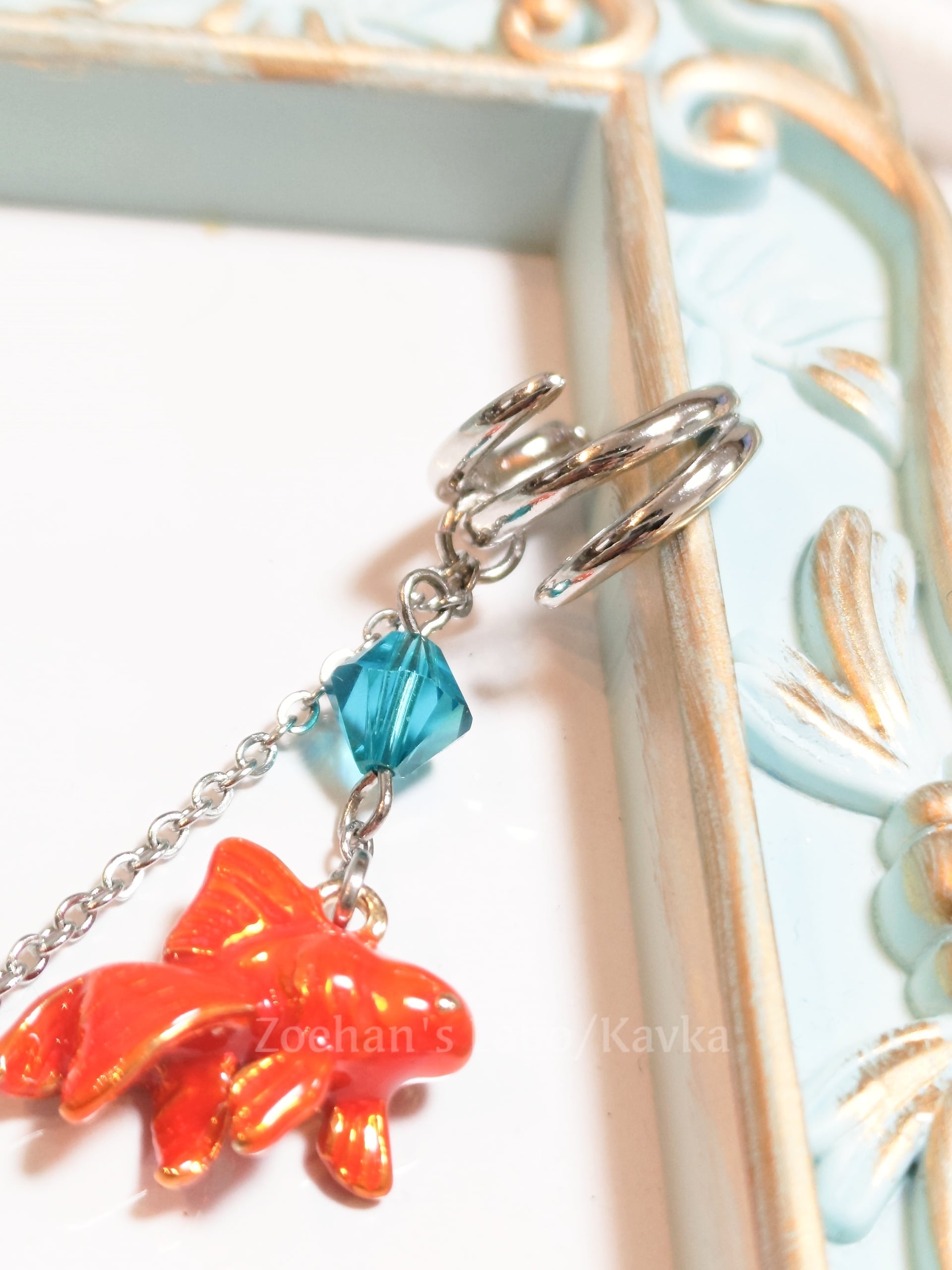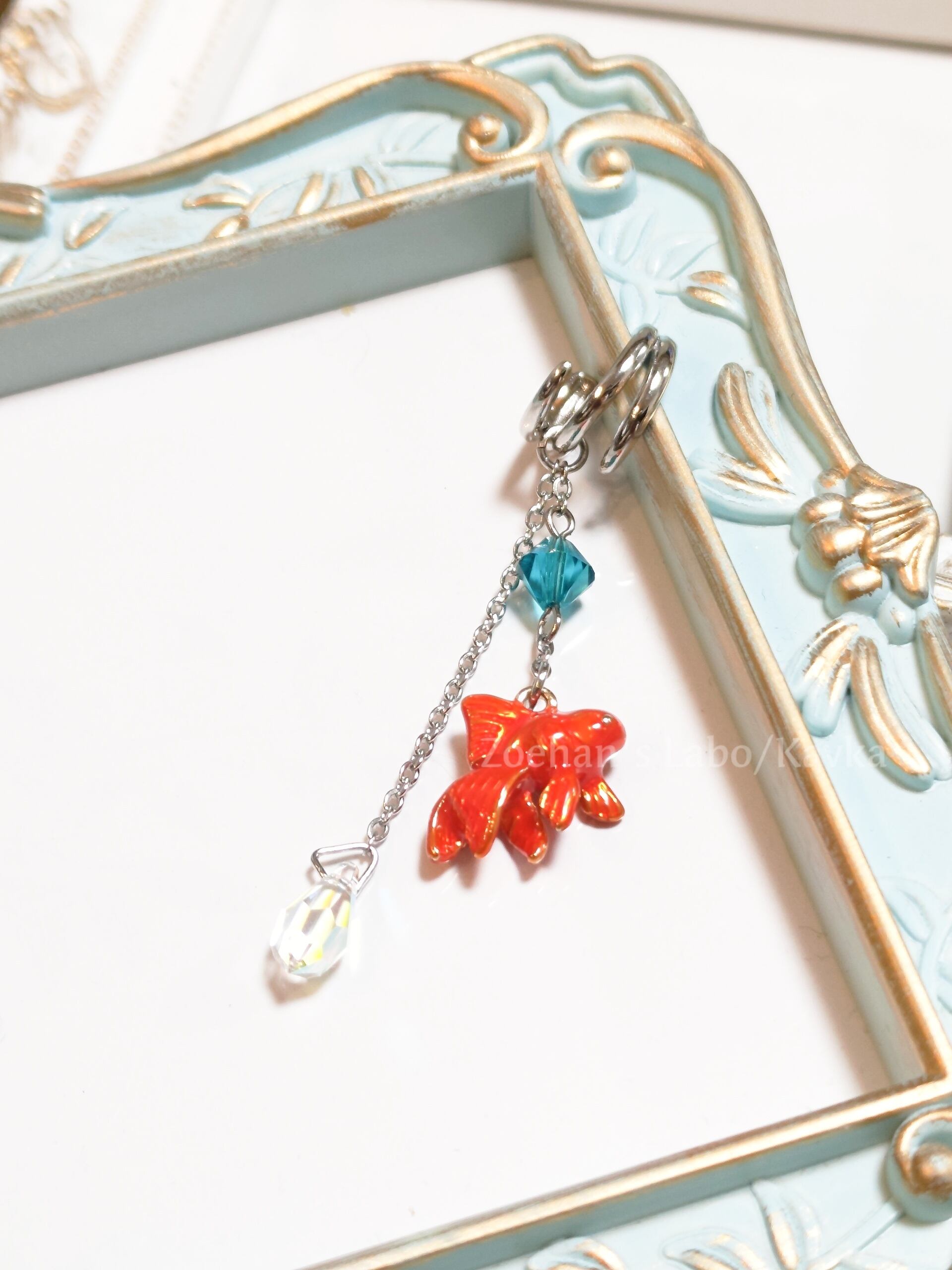 和風な金魚のイヤーカフ。