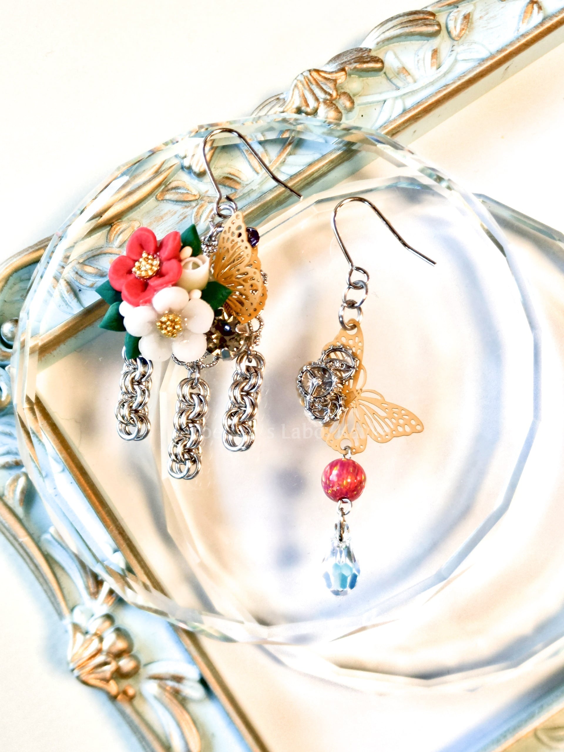 吉を運ぶ蝶の舞う、椿の耳飾り。