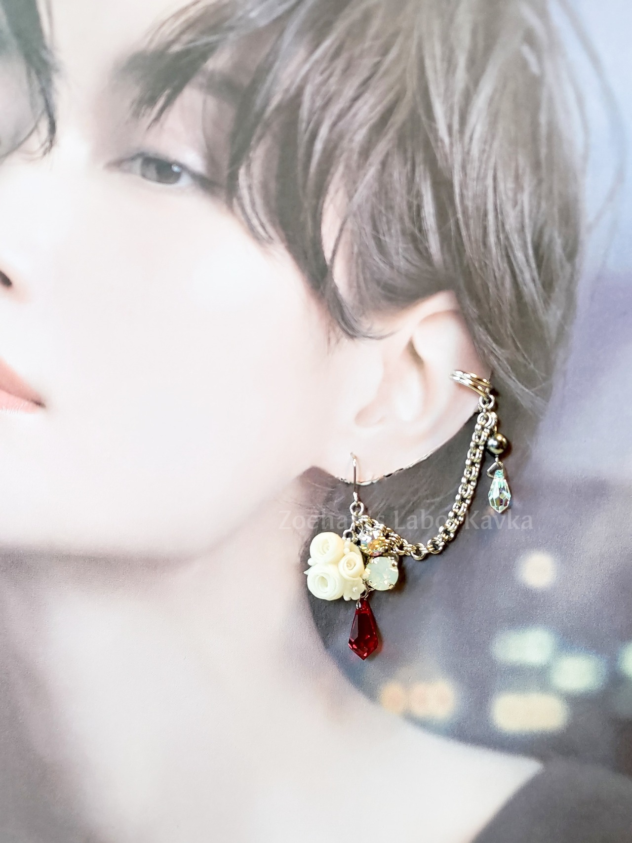 耳飾りとイヤーカフが一体となった、2連耳飾りです。