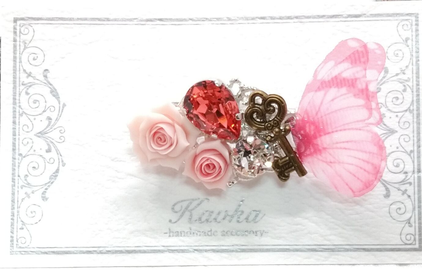 カバンに、帽子に、ストールに。シンプルな装いのアクセントにどうぞ。シフォンの蝶が可愛さを引き出します。
