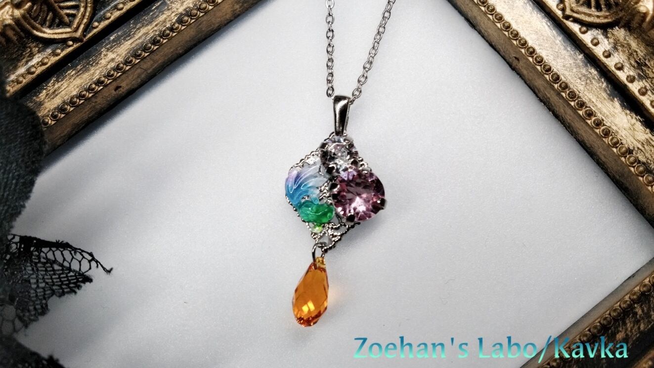 夕焼け映す金魚鉢を泳ぐ金魚をイメージしたネックレス。